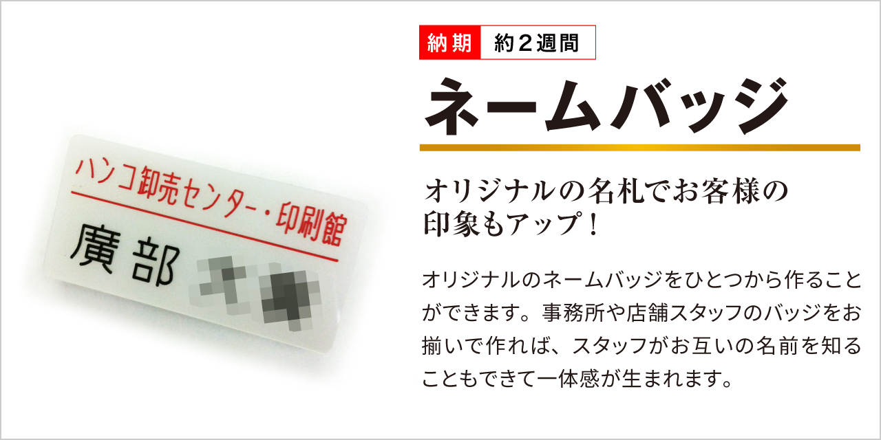 書体は丸ゴシックです。 刷色は黒・赤・DICカラー 板はパールホワイト(赤・黒板は1つあたり+300円となります)。 ピンまたはワニピンはサービスです。 指定のない場合はワニピンが付きます。