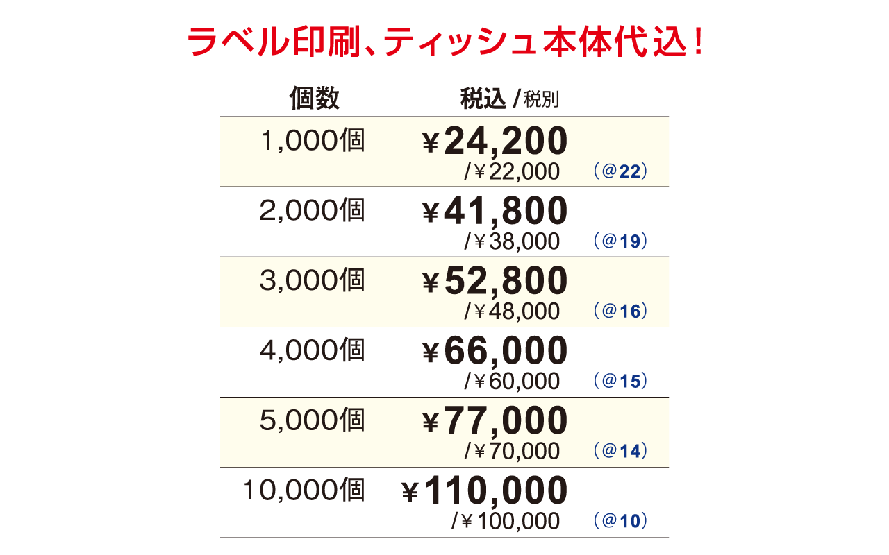 ティッシュ6組入りのポケットティッシュ。ラベル部分に自由にフルカラーでデザインしていただけます。販売促進などにいかがですか?