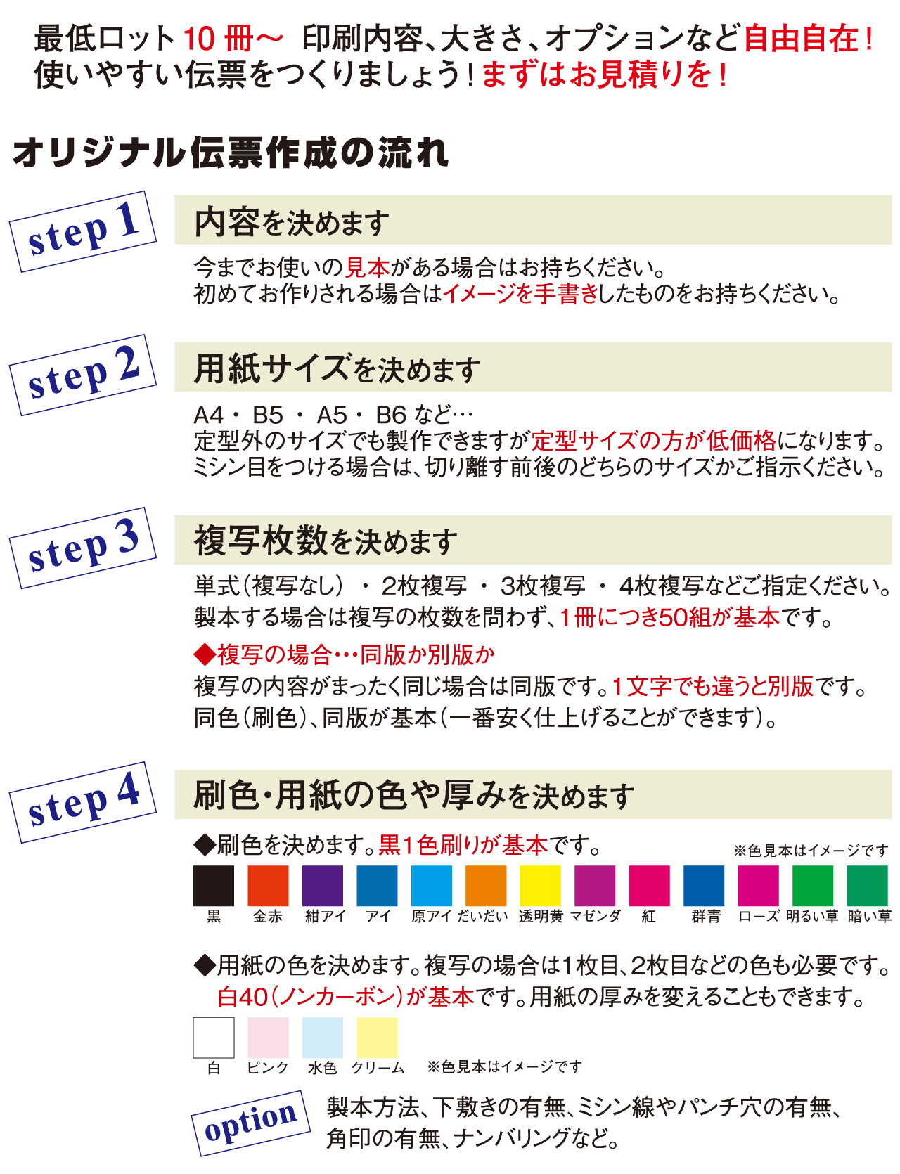最低ロット10冊~ 印刷内容、大きさ、オプションなど自由自在!